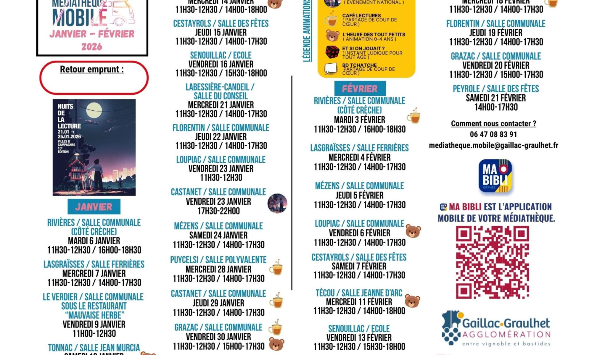 L’équipe de la Médiathèque Mobile de la Communauté d’agglomération Gaillac-Graulhet (CAGG) vous attend à la salle communale de Puycelsi : Mercredi 28 janvier 2026 et Mercredi 18 février 2026